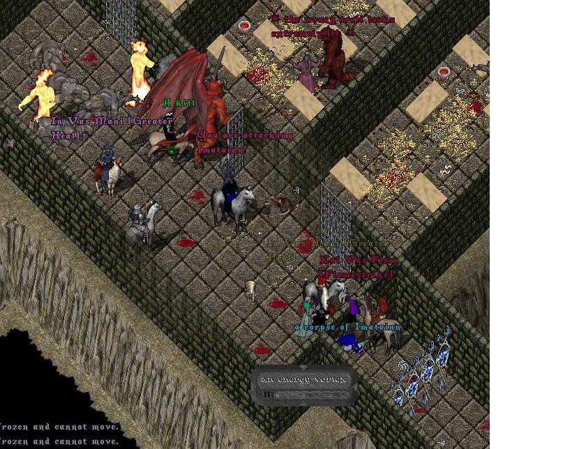 Once again a blue character showed up and decided to greif the party by throwing an ev into the middle of our group. Darkradiance was quick on his feet and energy fielded off the narrow hallway and the pker to be was soon stomped under the toes of some newbie swords! impressive also shown below.