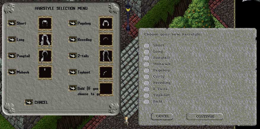 Sure:)Psilo wrote:Hey Derrick, can you post a picture of the two types? Or at least the current menu as of this patch?The post-T2A style Hair Deed will no longer be available. Only the classic OSI style deed with no pictures, but which includes the "afro" (called curly) will be created from here out.