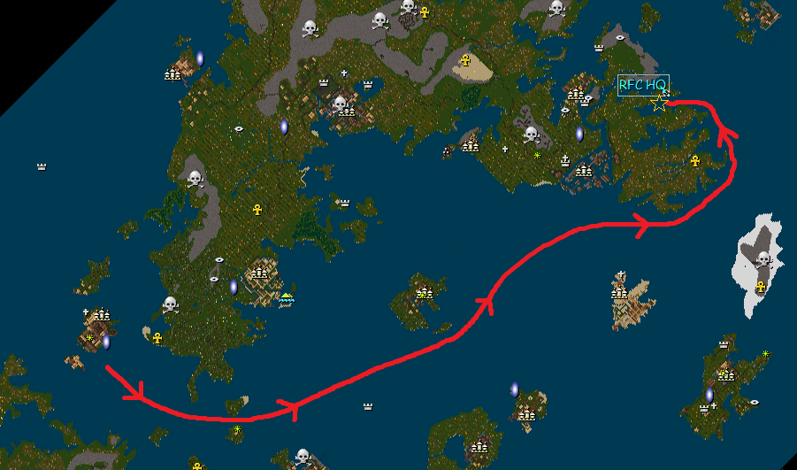 • RFC will sail from the Jhelom vicinity to their HQ (see map for route)