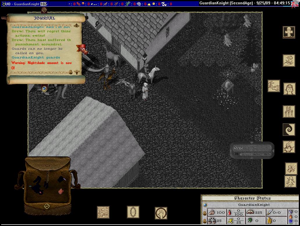 Guy lures a mare thru a gate of mine....gone. I'm sittin in skara and suddenly i see "the guards can no longer be called on you" . GUy says don't say the G word or you'll die. I say nope. Says guards can't be called on me....WACK.