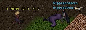 The problem was I am using my hiding mage-thief, who can't fight his way out of a paper bag. He certainly can't wield a bardiche. The newbie flees for his life in town, as I follow yelling "En guarde, sir!" all the way.