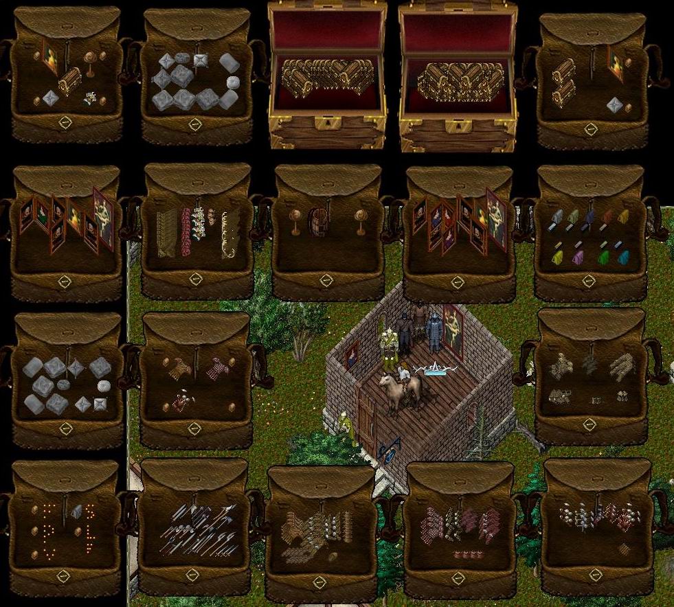 Wooden chests 100gp (free gift in a lot of them!), Pillows 100gp, Small Paintings 100gp, Large Paintings 2000gp, Bear/Dear Masks 2000gp, Tribal Masks 1500gp, Orc Masks 1000gp. GM Leather Armor, GM Ringmail Armor (all colors available!). Force/Power/Vanq/Silver weapons priced low (re-stock soon!). Find it all 1 screen NE of Yew Bank Mall.