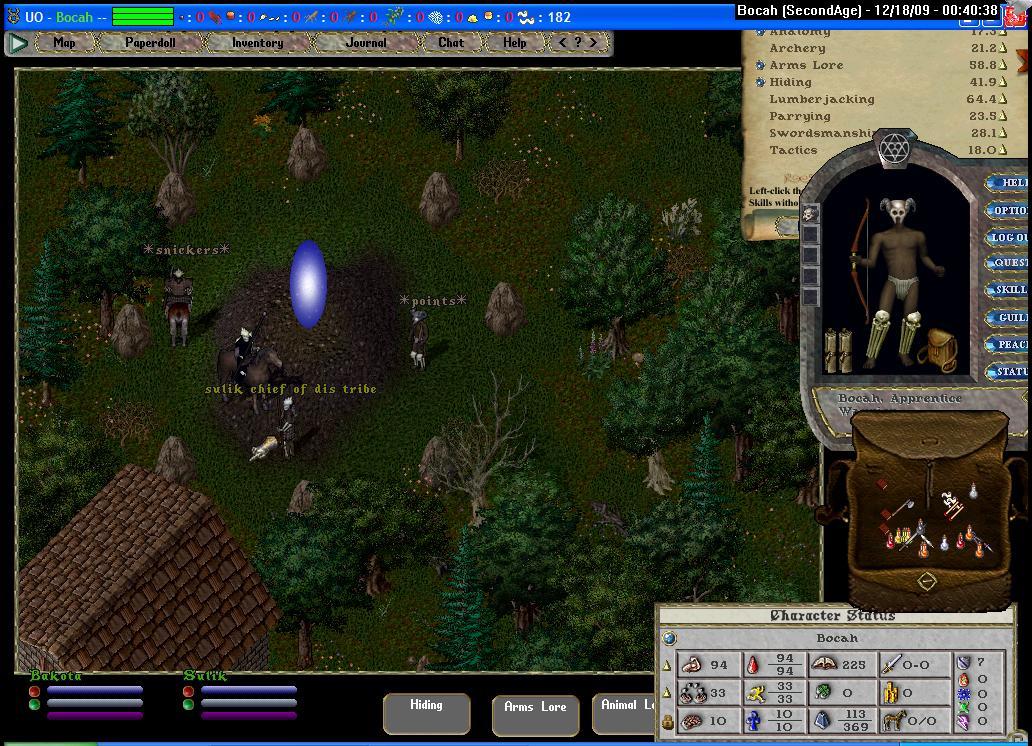 I spent the day training my char (no afk macroing of combat skills allowed omgwtfbbq). I watched the "pvp" at brit gy there were 2 main tactics on display. "outnumbered so run" and the other one was "we outnumber his so chase him". They ignored this little noob shooting skeletons, all except Rose who rode in a mowed me down. No screenshots sorry, I'd overwritted my screenshot hotkey somehow (*sigh* even more fail right there).