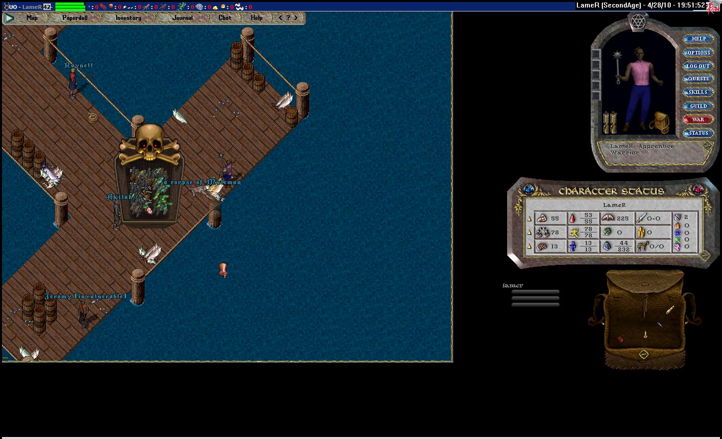 You sure? Every time I wander by the docks there always seems to be dead fishermen.SJane3384 wrote: Town docks are good, because since you aren't deep water fishing (and can go afk), you are much less likely to get killed.