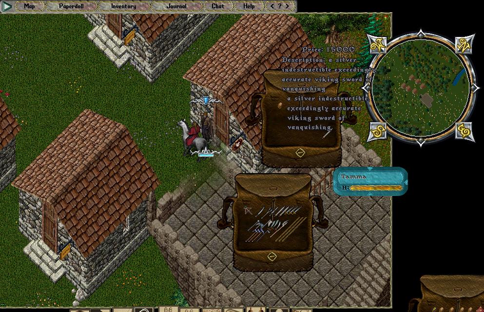 Brand new, 15k, you can find it along with some other silver weapons I want to sell at a small south of Trinsic near the old Zsv guild house. Come check it out I got some cheapies and some middies. More to come.