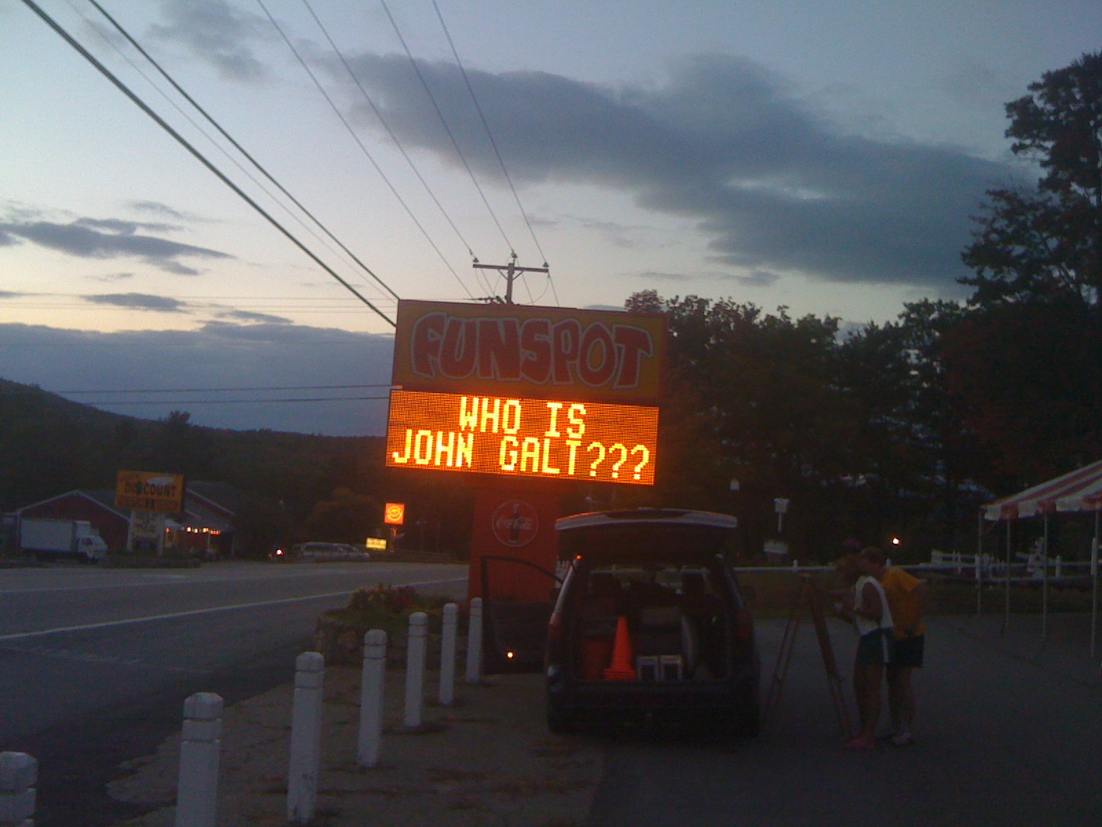 Outside of Fun-Spot, can't miss it, is a big Red & White Tent.