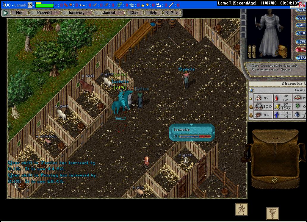 Our tale begins in the fine city of Britain, at the eastern bank. An absentminded fellow drops his runebook, and I, always a noble bard, offer to return it.