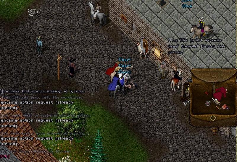 Almost as soon as the thief dies, another one of the thiefs runs over to loot the blue corpse and is instantly killed by one of the kind hearted guards of Britainnia.