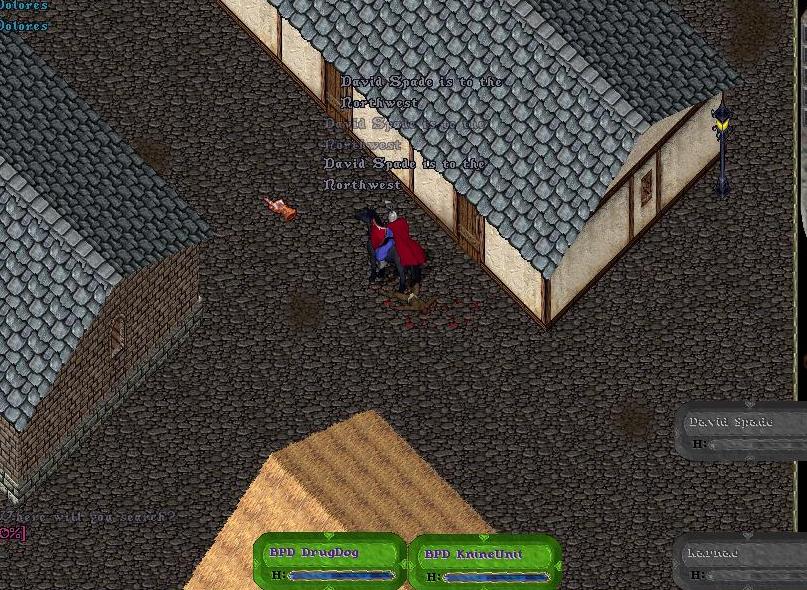 Before I even check in to the BPD HQ I am doing some errands and when I stroll through Britain I see Barney already on patrol and laying the smack down while serving Justice to an unsavory criminal......Chief Atraxi and Lord British would be proud.