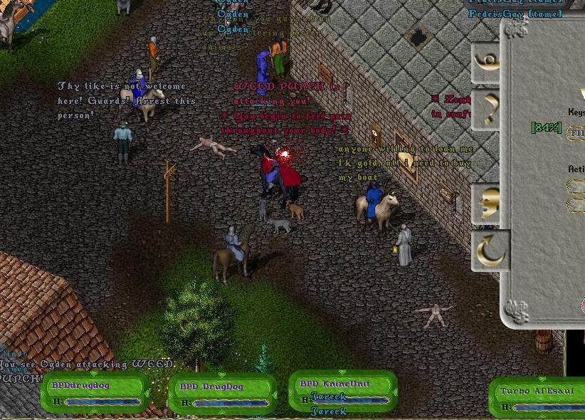 Soon a noob citizen wearing a death robe shows up and poisons me. What I thought was just a random act of unkindness would soon turn into a repetitive thing the whole night. Evidently this individual loves having to get rezed, loves time outs, and frequents the local healer quite often.....