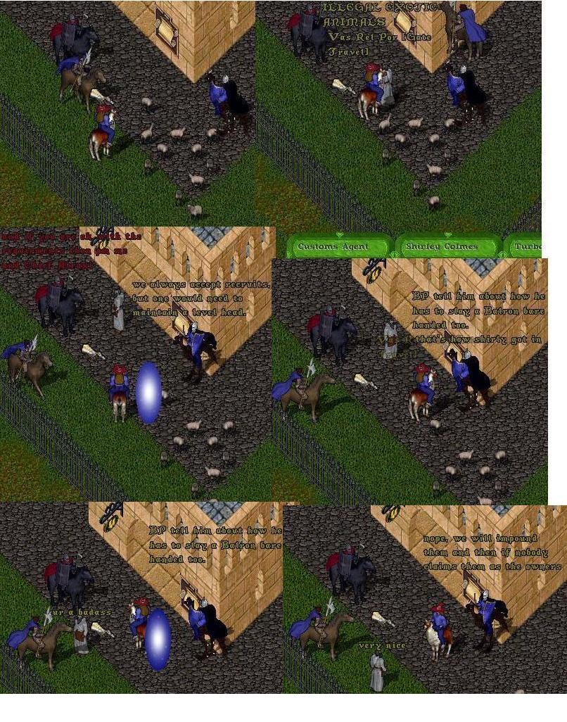 Captain Turbo and Customs Agent reminds him that Lord British owns all the cities in Sosaria that has his royal guards present in them.