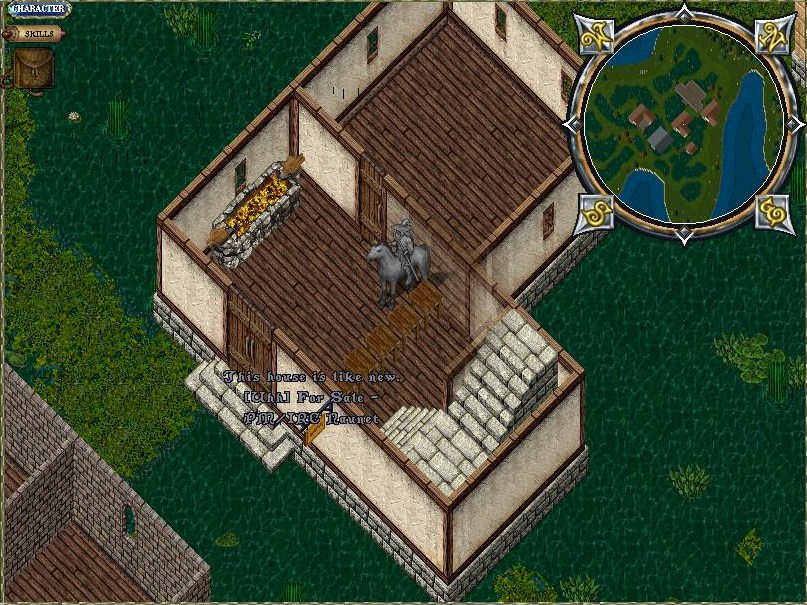 I have a recently purchased L Shape now available for sale. This location is just south of the Destard Dungeon, so you can easily run to your home to drop loot off, collect reagents and what not with ease, and all natural resources are close to hand. Fishing to the west, mining along the north (least 3 mining caves there), and lunberjacking also to the north. This house comes with some already included addons, the large forge on the west ground floor and top floor has a spinning wheel plus loom installed in the back room. I havent looked at the geography of the location but possible puchase of the small house east may allow something larger to fit in here.