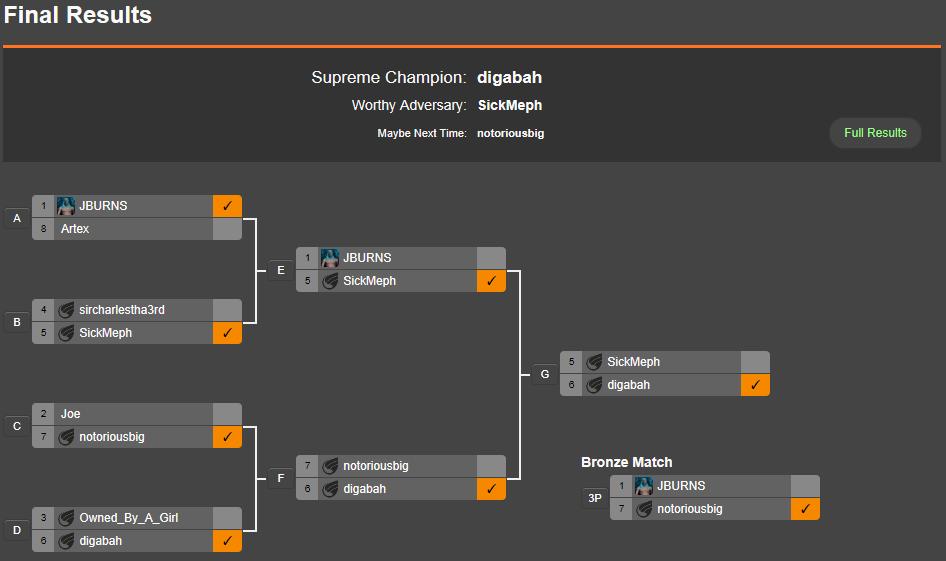 Bracket will be shuffled 3 times before being locked and tournament begins.