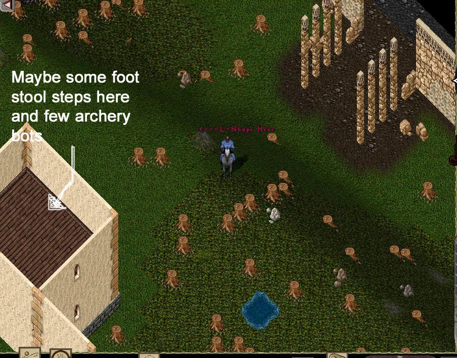 Selling this L-Shape thats on the front porch of Fire Temple. With the know how and some foot stools you can easily make foot stool steps leading out the back or have archer bots posted on them in back.