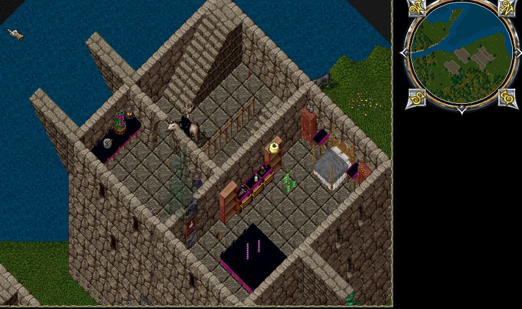 Yes you can fish from the roof, but not deep water. This one will come fully deco'ed with the upper floor still constructed with stools. I paid 3 deeds for this back in the day and it was considered a steal.