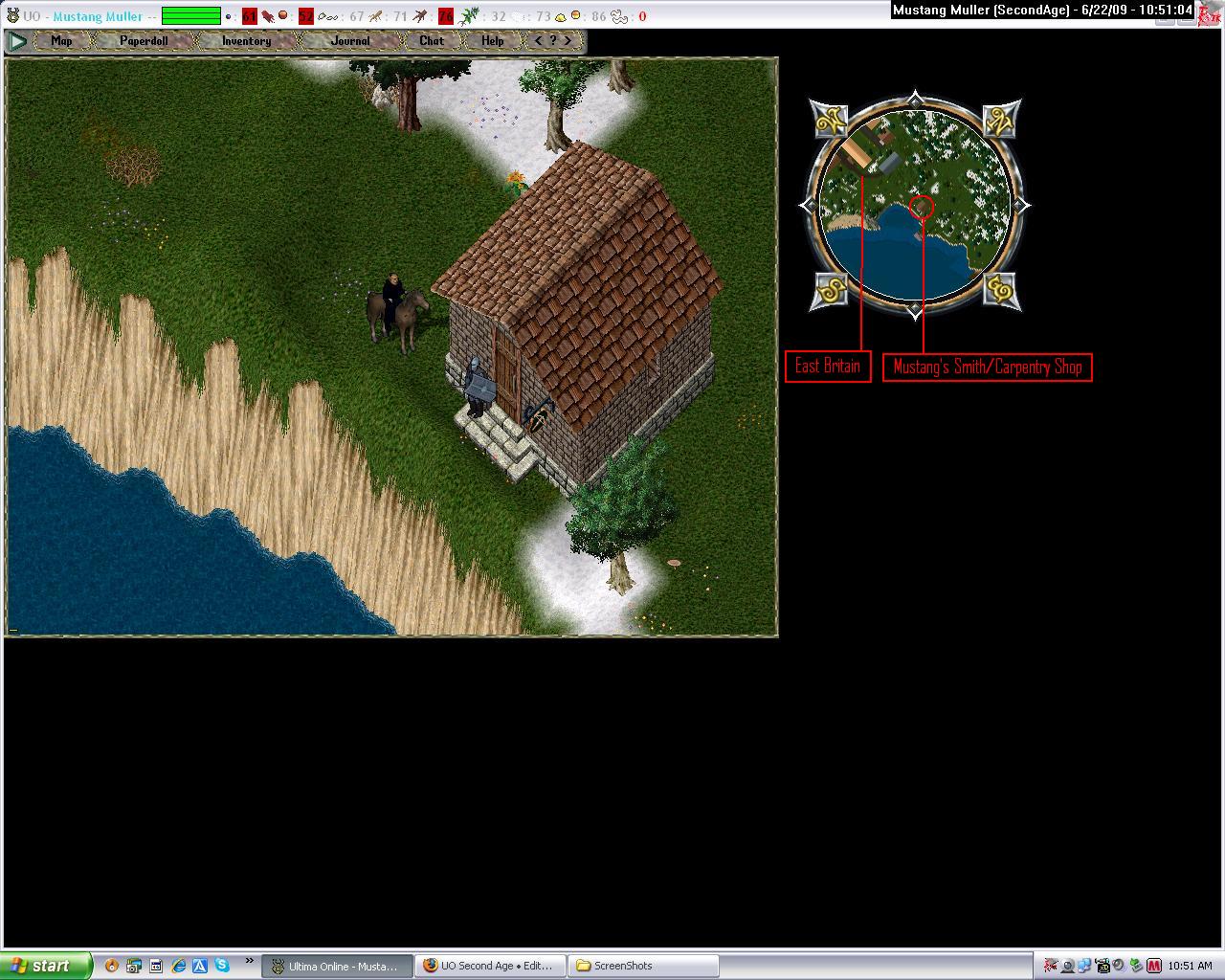 Please visit my Blacksmith/Carpentry shop located approx 4 screens east of EBB just along the shore line. I carry GM Dexxer Suits in all different color's, House add on's, Boards and Ingots (sometimes), Weapons, etc.