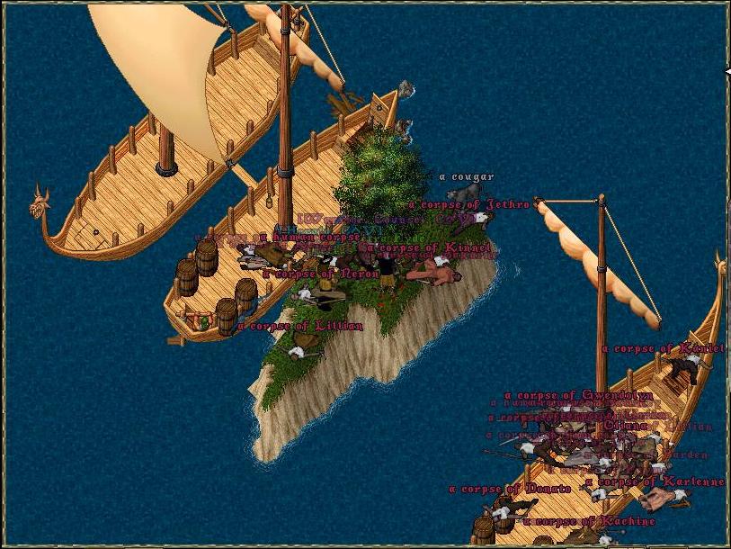 Suddenly we happened upon a group of pirates congregated on a small secluded island. Noticing the ships belonged to the Company of the Vigilant, we knew immediately what had to be done. Fighting went on for quite some time, as their numbers didn't seem to dwindle. Their numbers were incredible. As soon as we killed one, another would be coming out form the hull of the ships. After a long, hard fought battle, all remaining pirates were stranded on the small island, as we hurried to prepare the ships for sailing. It will be months before the blood is washed from our decks, but we have managed to rescue our boats. I am unsure as to what the survivors might be planning next, but surely they are planning some mieschief.