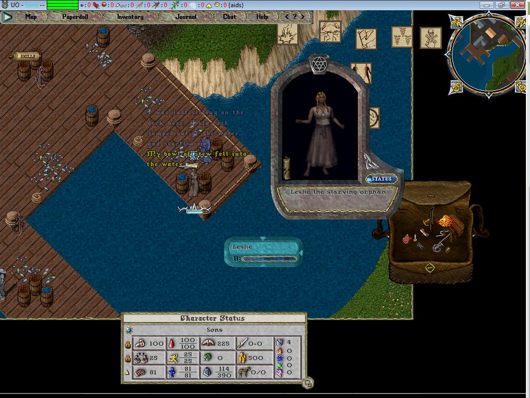 Update: I was on my fisherman and Leslie asked if I would help fish up her stew. And I notice a new scroll in my pack for 'Starving Orphan'. And when you click it this quest box comes up. I have no idea where to try and fish up the stew, I fished all around her with no luck. It looks like the reward for completing this is 900 Karma. That's all I have on it.