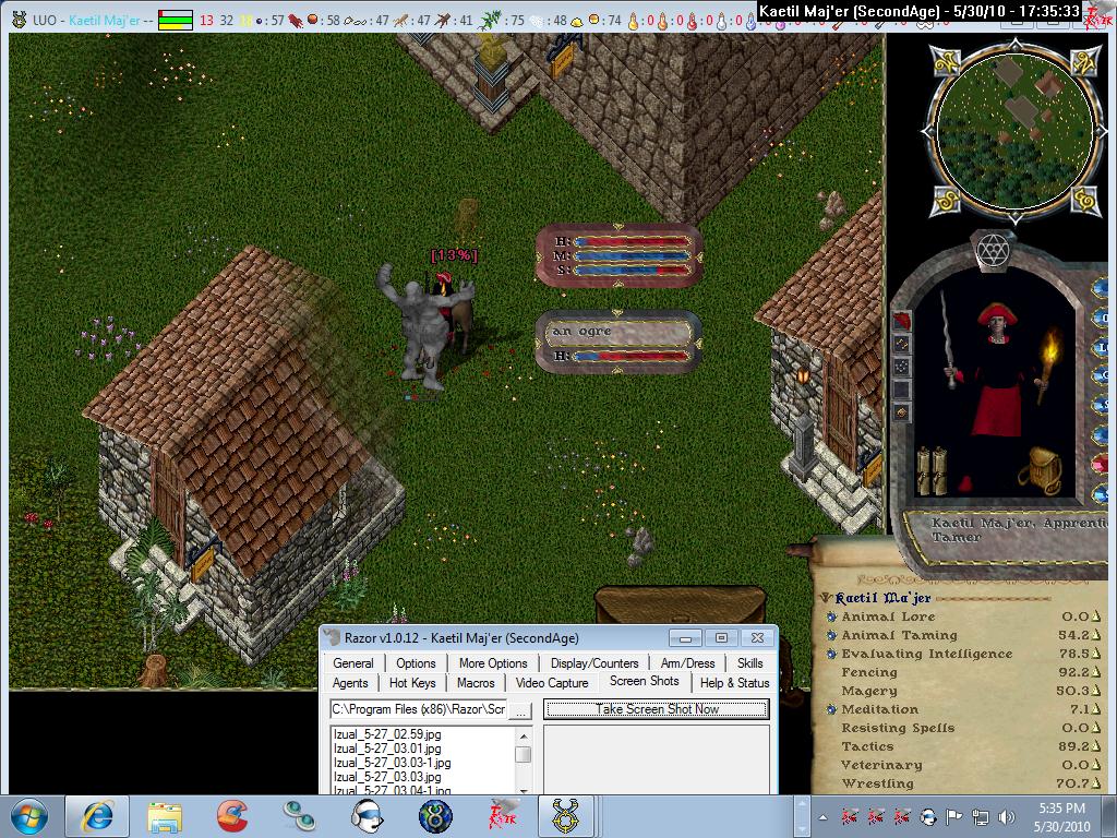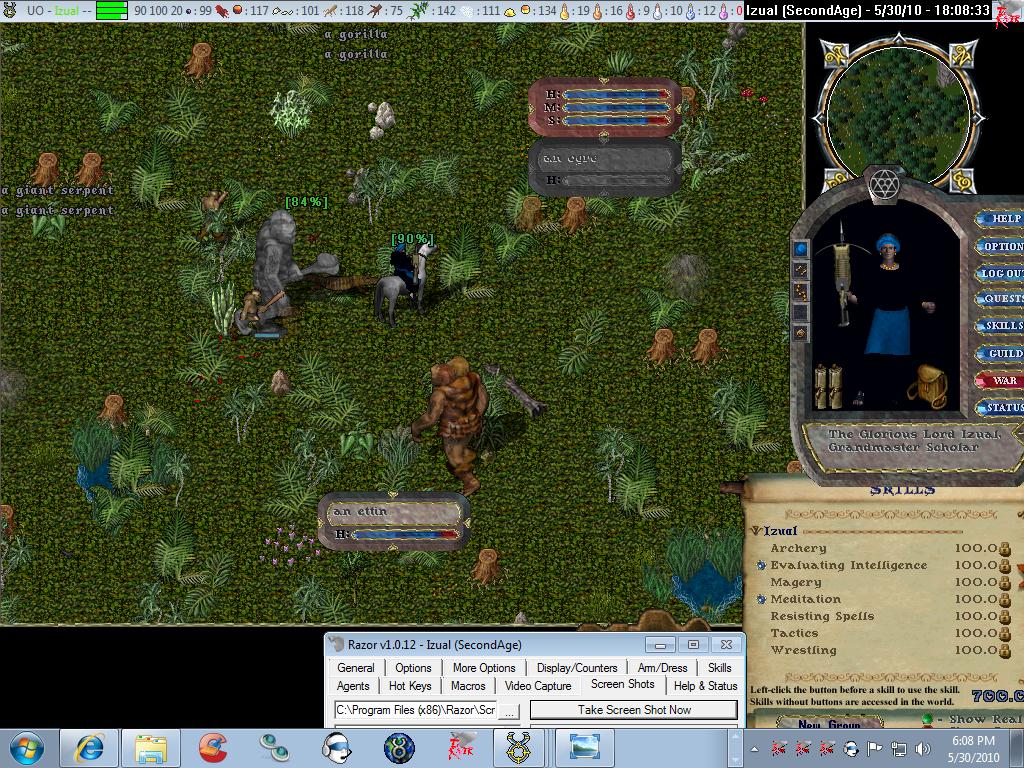 i dont remember osi '99 that well to comment on how fast an orc should die, but yeah i updated my last post. have noticed some monsters are wtfstrongIzual wrote:Are you kidding me.. Its an Orc.. Its a Kryss of Force +20.. I want to curse you!nightshark wrote:because you're not wearing any armor and not healing? your dex is kind've irrelevant when your stam has taken a beating like your screenshots
