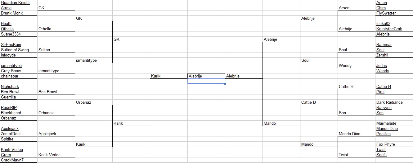 3. It'll be bracket style, one on one, with me rolling in game dice.