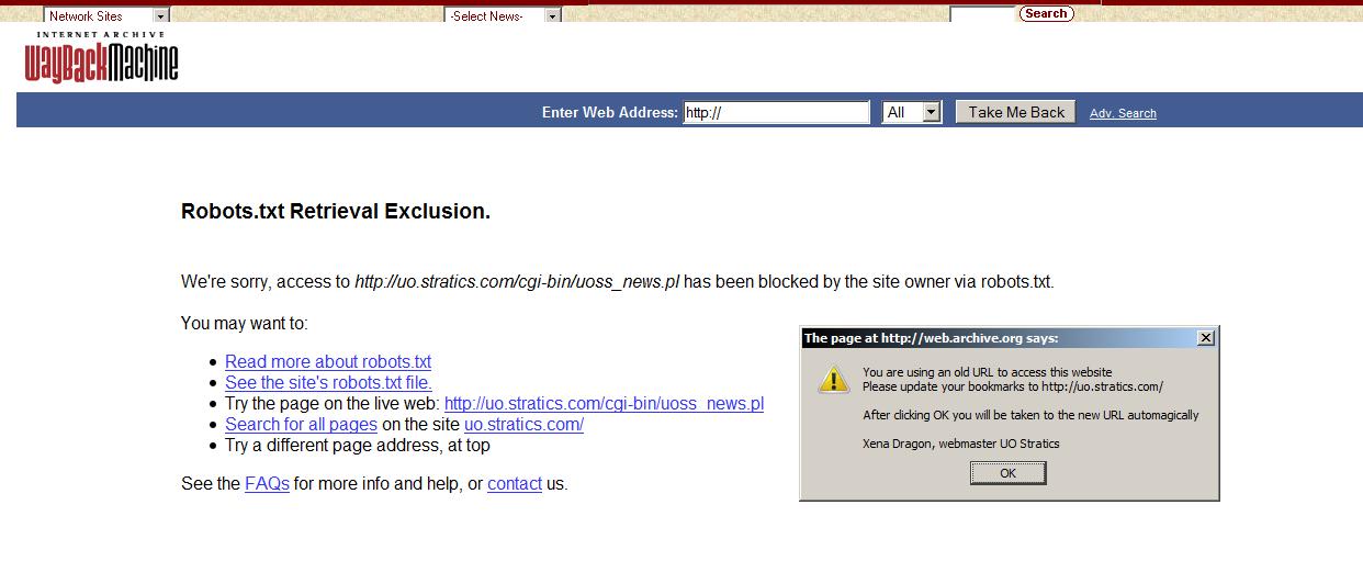 more and more "vintage" stratics pages from web.archive.org are being internally redirected to stratic's (present-day) main uo page.