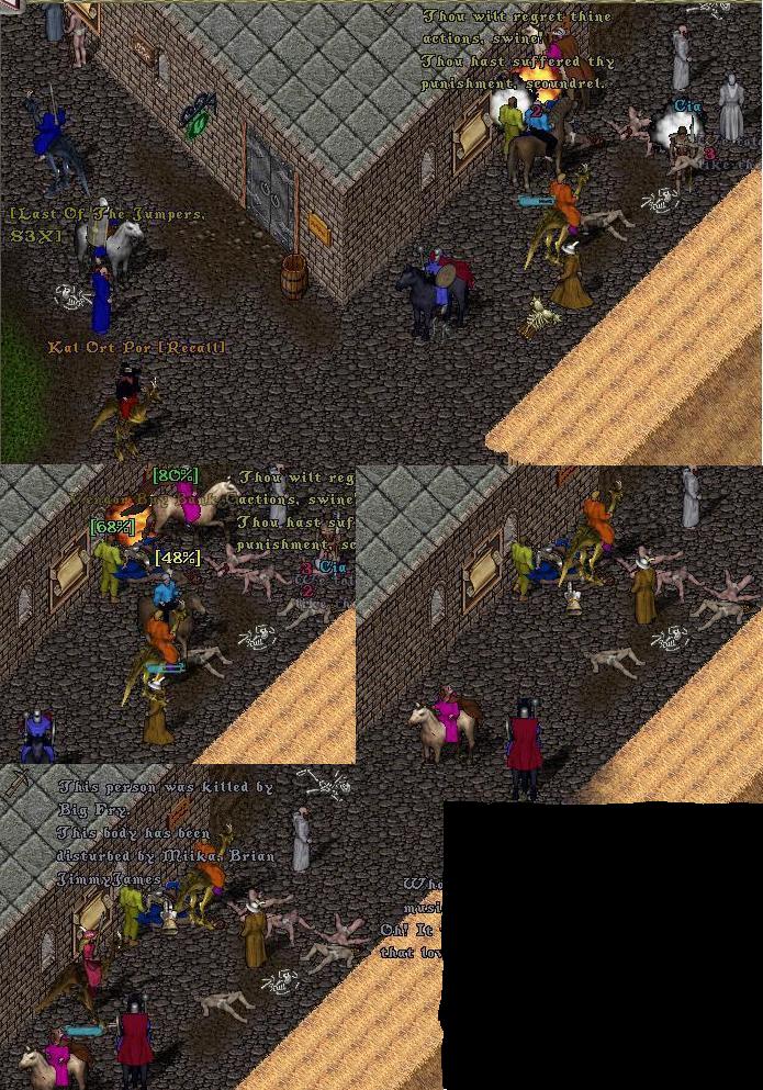 I started the day doing the "Shemp's Blade" quest as a nice change of pace. After gating in Shemp at EBB the morning thief known as Arcturus runs by and makes my anti theft device go off. While deadly poisoned he manages to run all the way past the middle bridges before entering the spirit world and desecrating Lord British's sacred ground with his stanky corpse.