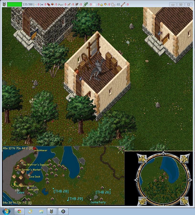 Small house that was my first home in these lands. It has been a great house for training with the Cove graveyard just a short run away. The orc fort and cove nearby as well. Low spawn in the area, occasional harpy, troll, orc or ettin.