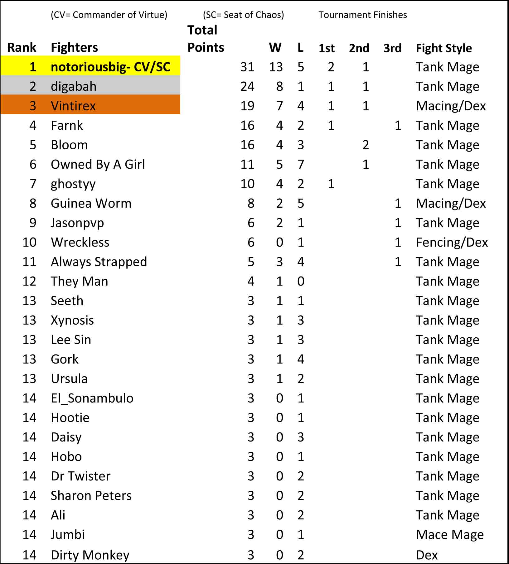 Matches for this ranking system are to be standard red pot/gm weapon/no magic items/no stealing/no ra/no pets/no summons rules.